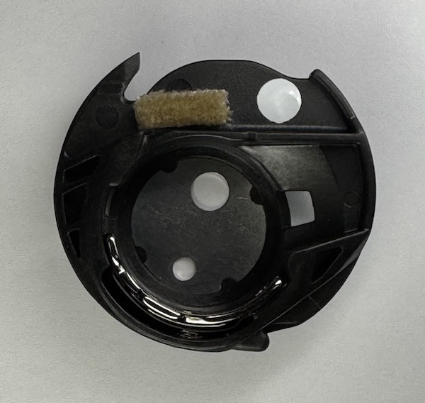 Pouzdro cívky pro šití bavlnkou, dvojjehlou. Šroub pro nastavení napětí spodní nitě není zakápnutý barvou a díky tomu je možné napětí nitě podle potřeby nastavit například pro šití ozdobnou bavlnkou nebo dvojjehlou.