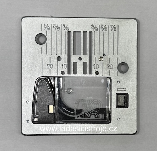 Stehová deska pro šicí stroj Lada L75 s malým otvorem pro šití jemných nebo pružných látek a volné prošívání "quiltování". Deska s malým otvorem zabraňuje vtlačování látky jehlou do otvoru stehové desky.